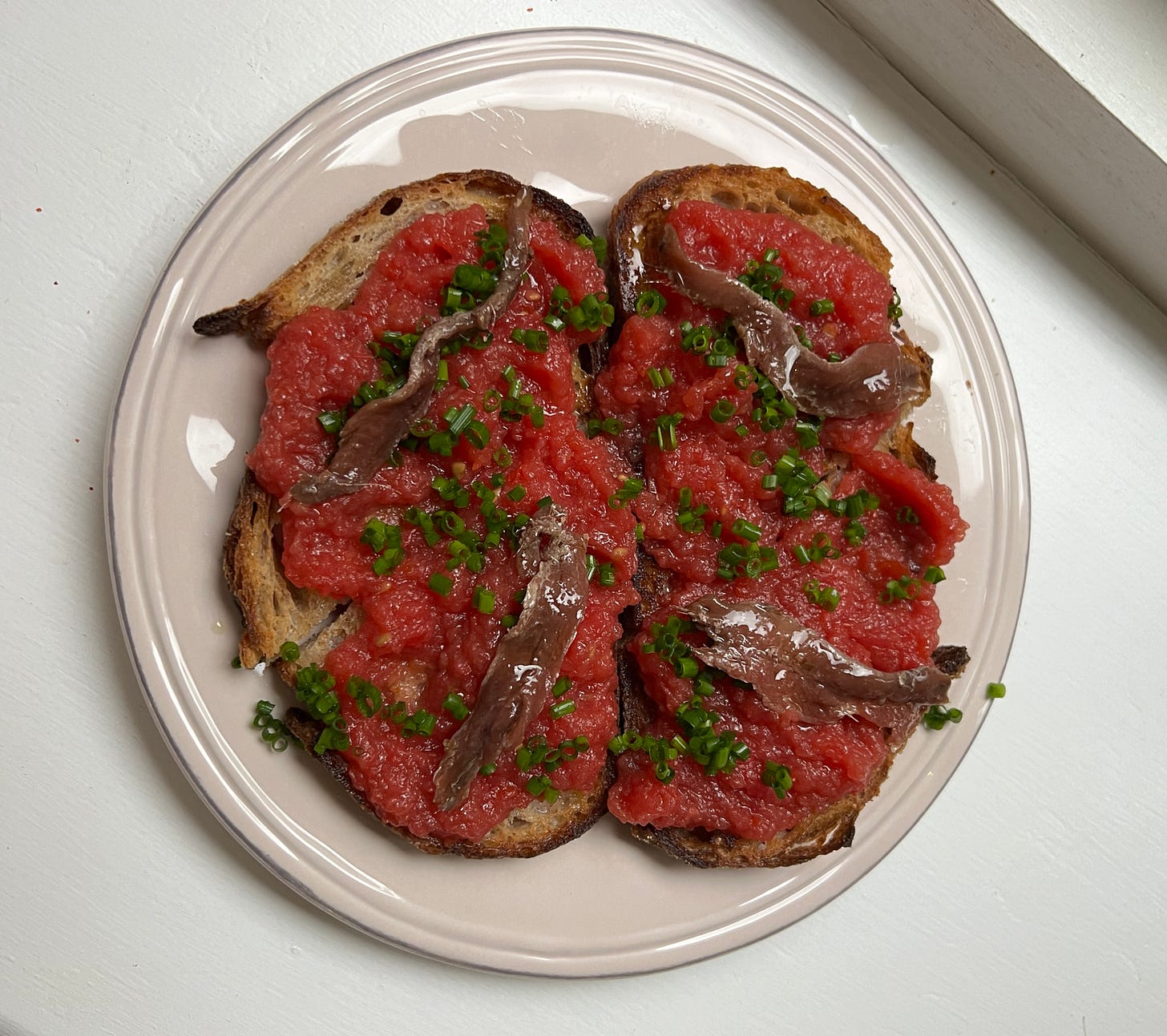 How I make pan con tomate is a lil less⦠rustic - but so, so good. Good enough that I eat it almost once per day, all tomato season long.